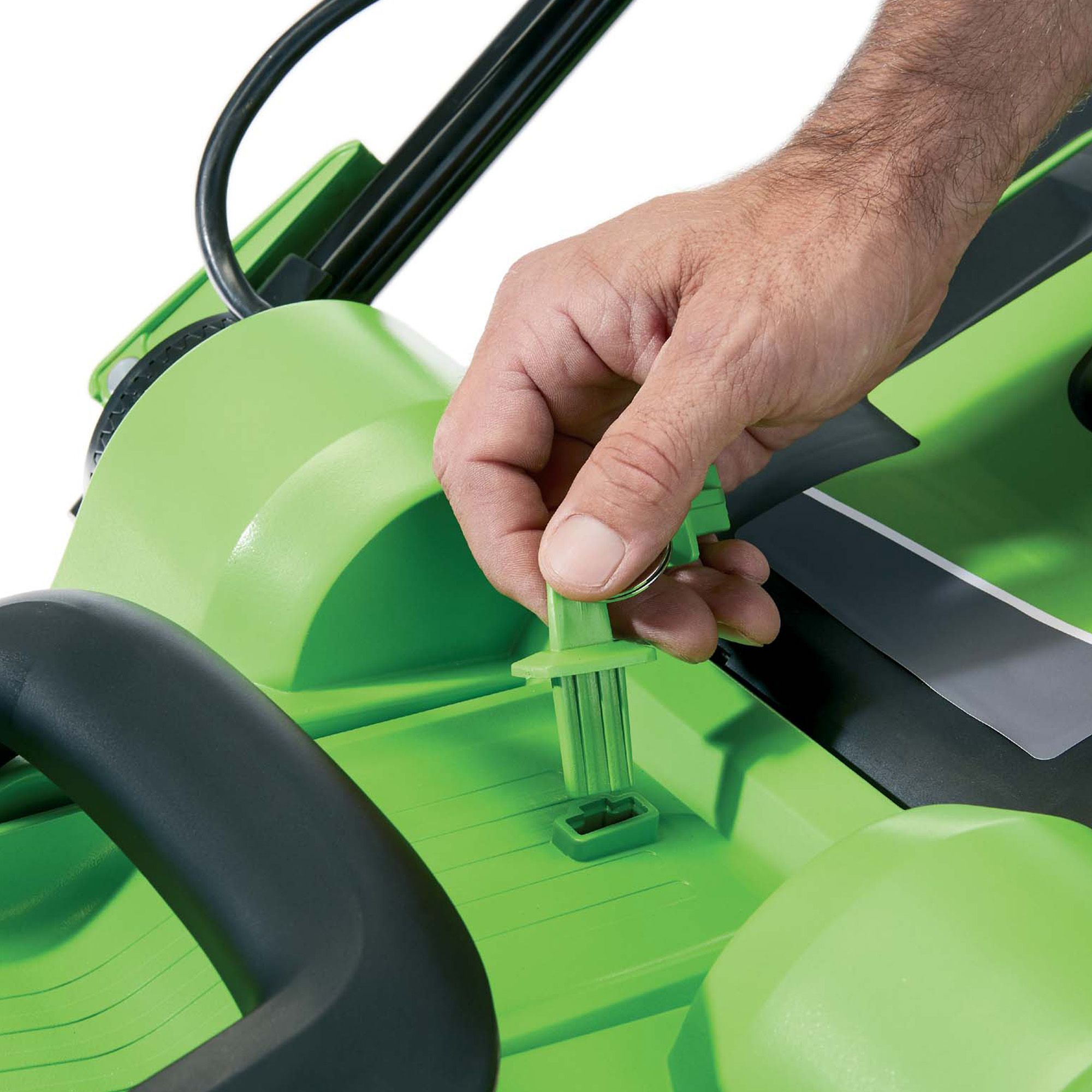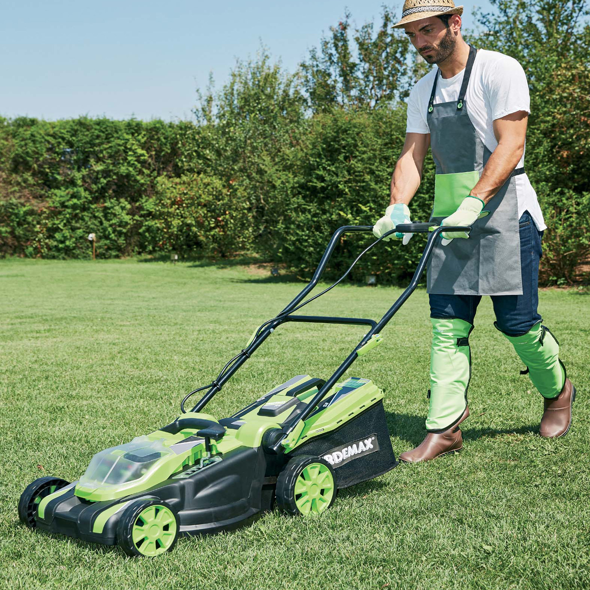 Il rasaerba a batteria Li-ion è adatto per il taglio di prati di piccole o medie dimensioni. E' fornito con due batterie da 20V - 2,5 Ah e relativo caricatore standard doppio. Diametro di taglio 380mm. Capacità della sacca di raccolta 40 litri. Dimensioni: H90 x P105 x L50cm - peso 16kg (batteria inclusa). Batteria di ricambio art. 4356.