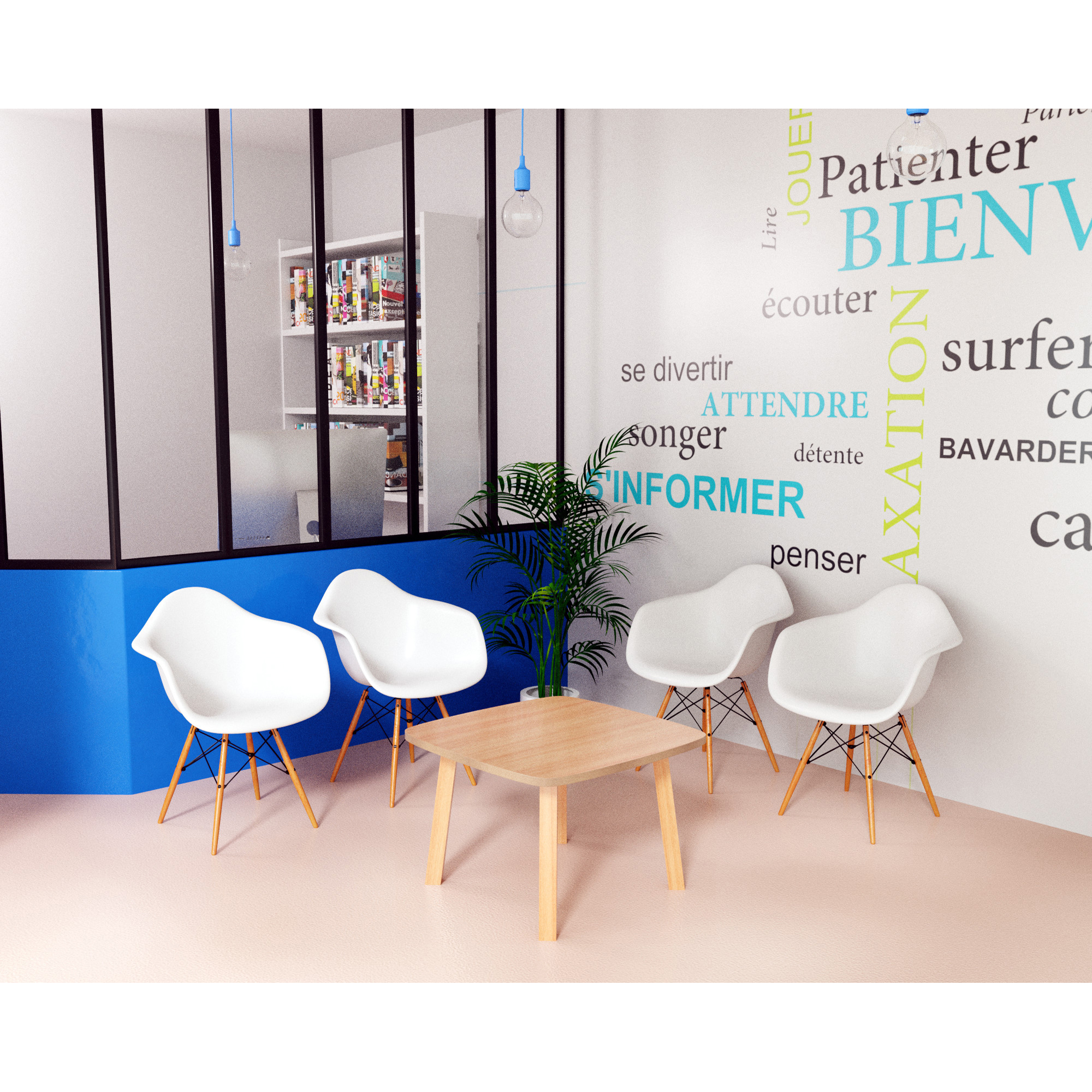 Tavolino Woody in MDF rivestito faggio. Gamba del tavolo in legno massello verniciato. Dimensioni:L60 x P60 x H40cm . Ideali per una sala attesa calda ed accogliente.
