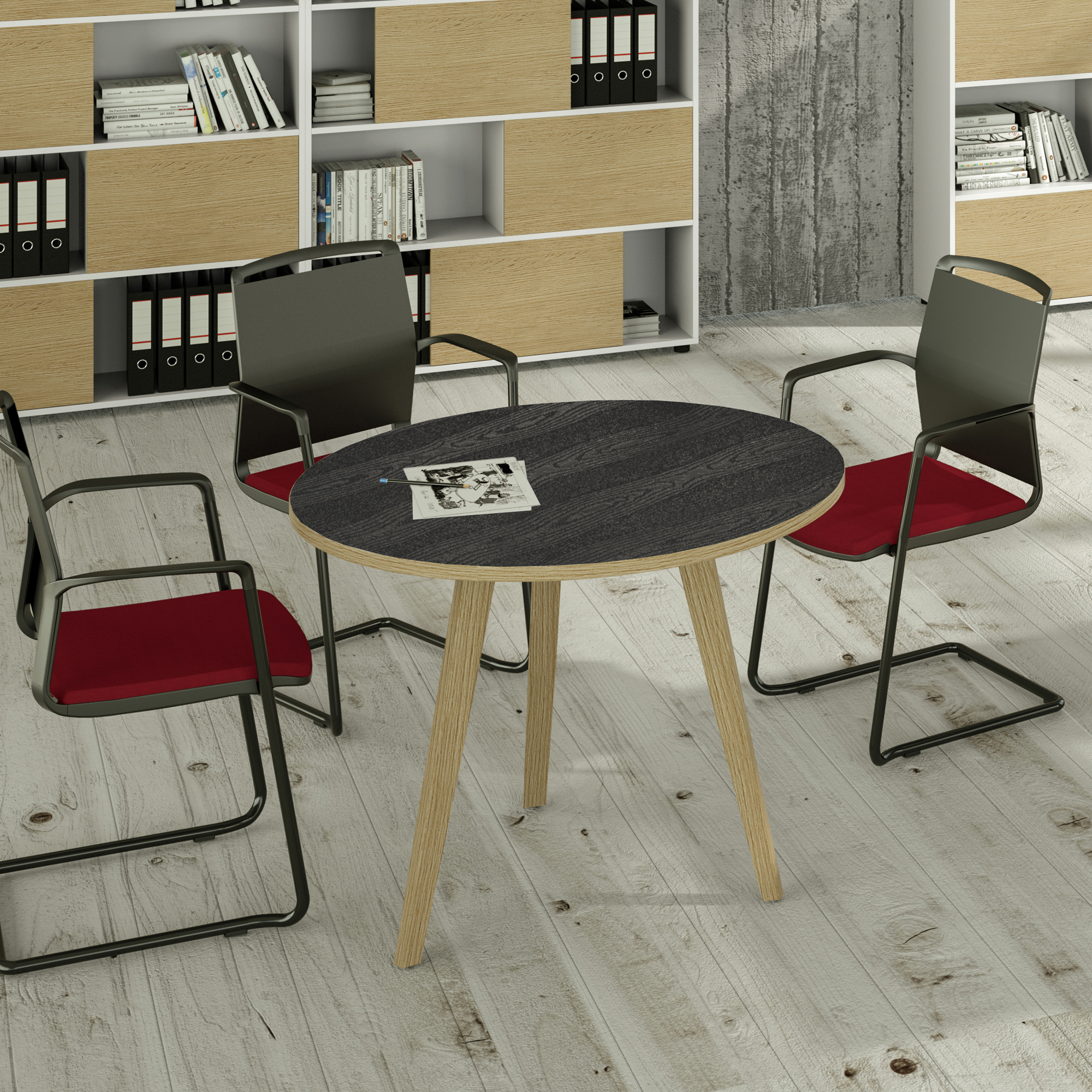 Info sui prodotti "Tavolo riunione tondo Woody - diametro 100 cm - rovere / nero venato"