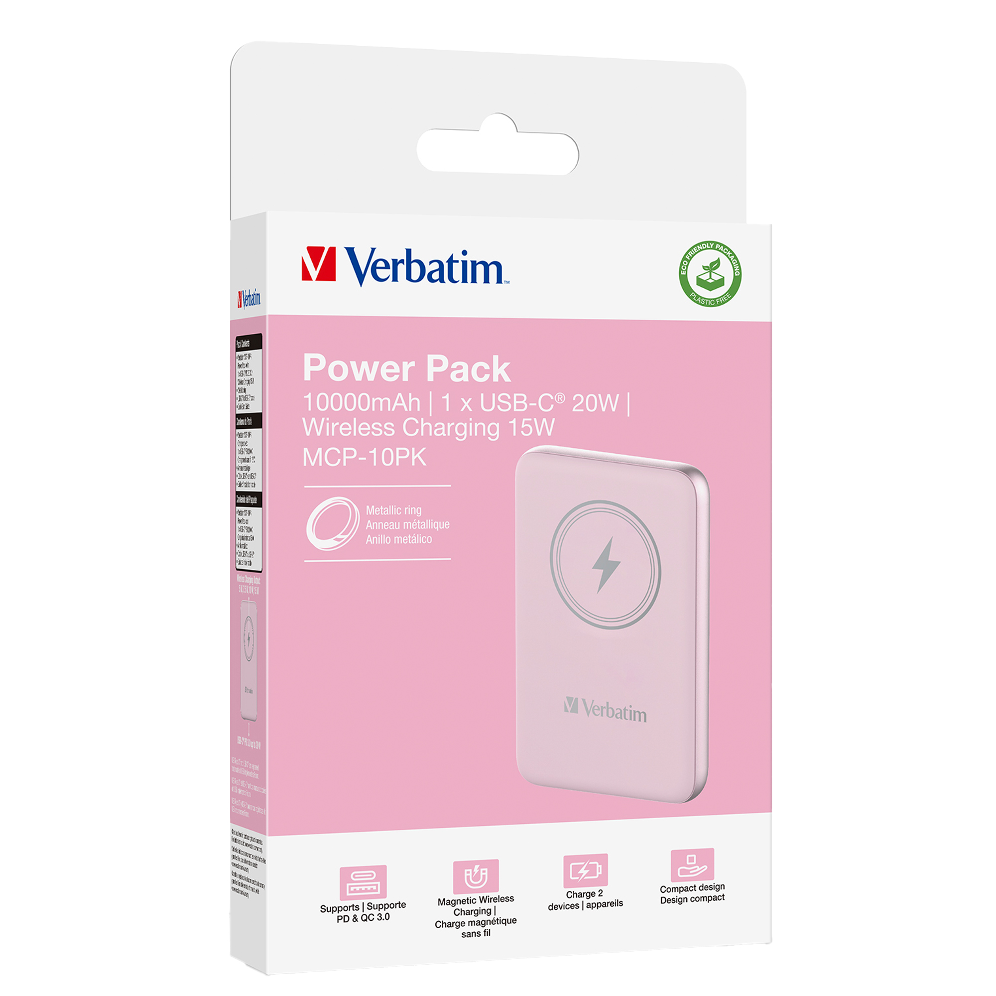 Info sui prodotti "Verbatim - Power Bank Wireless - 10000 mAh - Rosa - 32248"