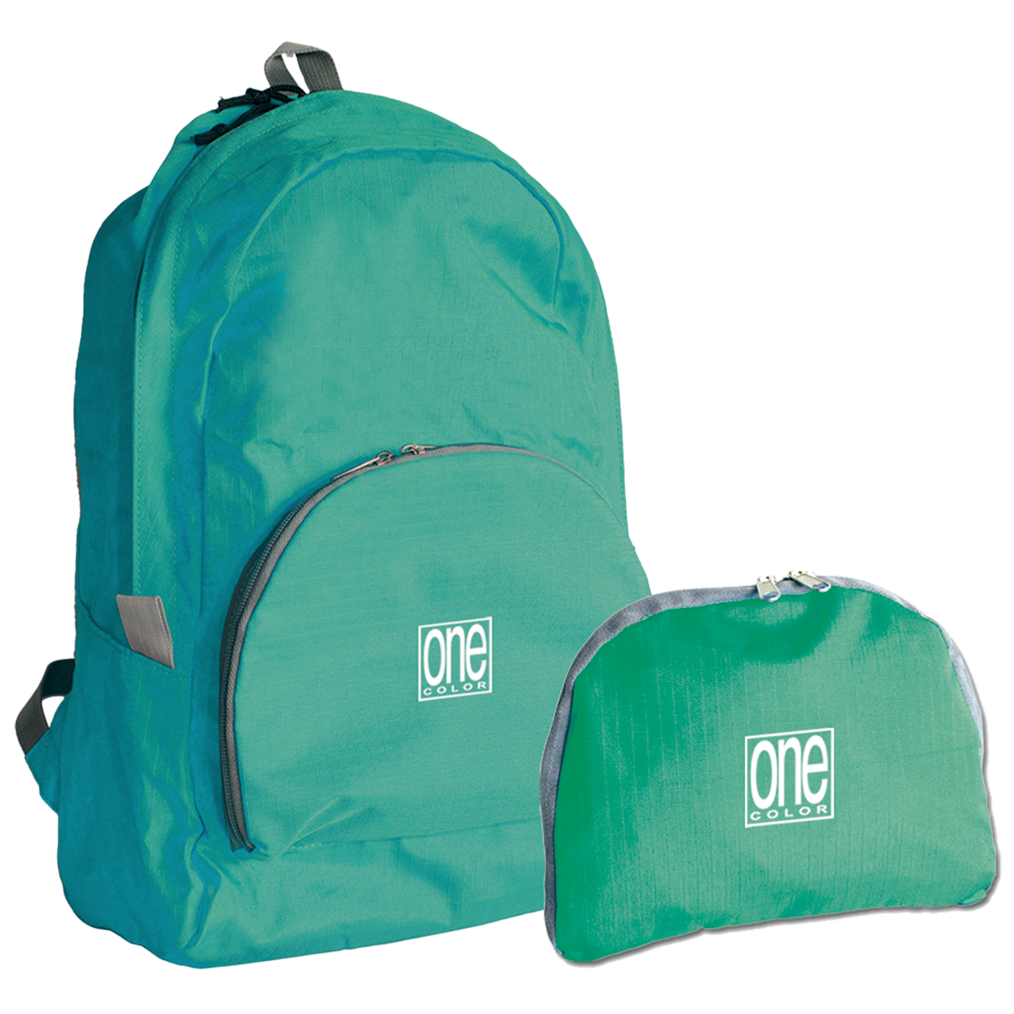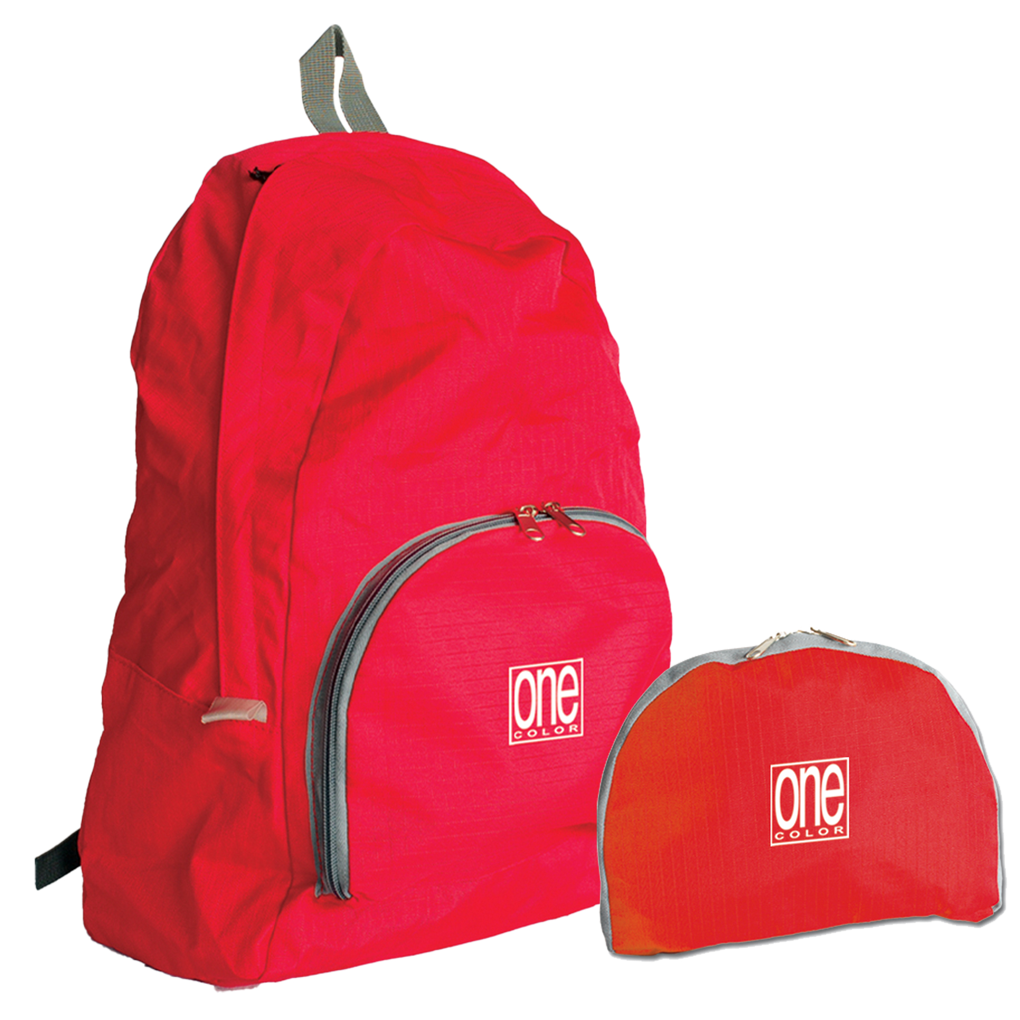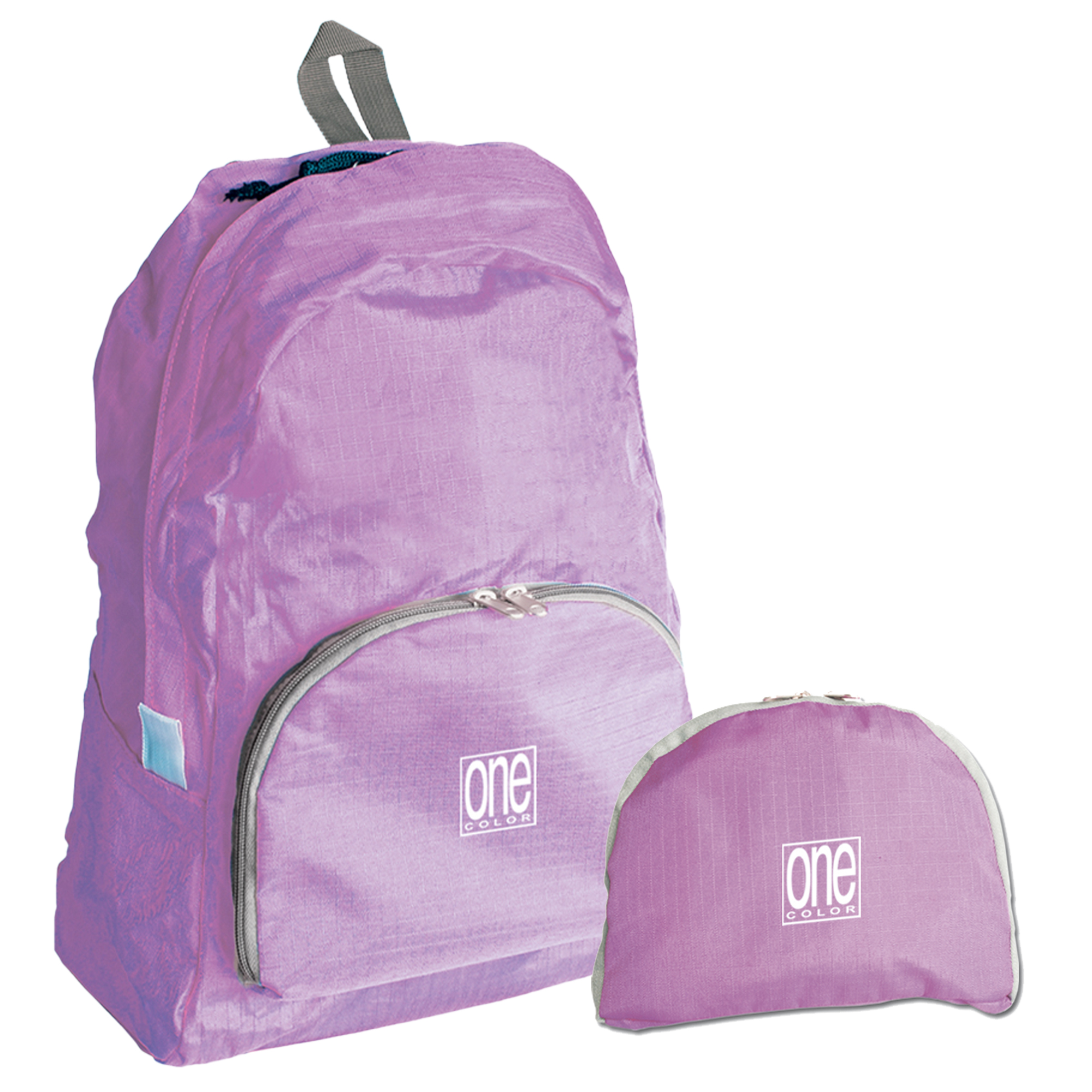 Zainetto in resistente nylon ripiegabile con tasca interna portaoggetti, tasca frontale. Cucitura rinforzate. Disponibile in 5 colori: grigio, verde, rosso, blu e lilla. Dimensioni aperto L30xH40xP10cm. Dimensioni chiuso: L24xH20xP4cm.